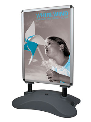Ilmastikukindel, tugev ja vastupidav, kiikuv kõnniteereklaam. Kahepoolne raam A1 mõõdus plakatitele.